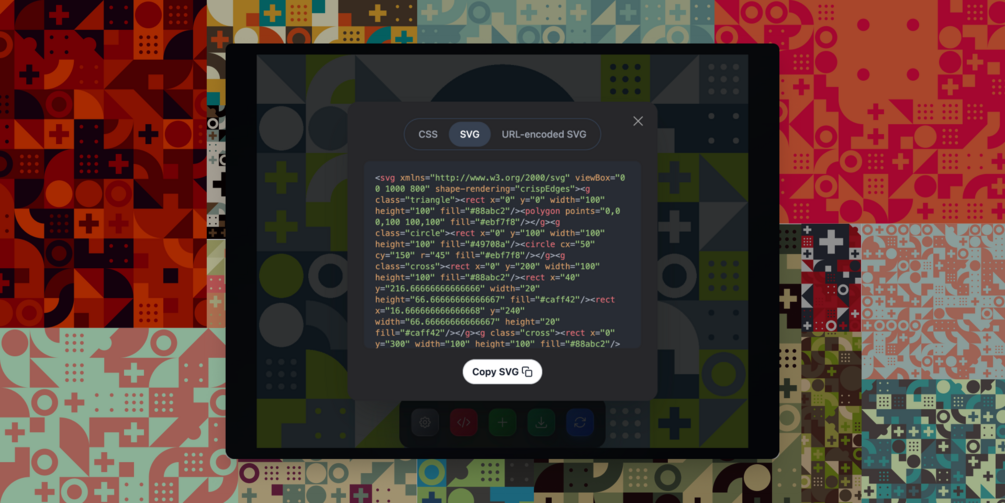 - Developer-Friendly: View and copy HTML & CSS code, raw SVG markup, or URL-encoded versions for seamless web integration